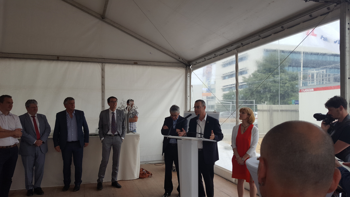 Plusieurs personnalités ayant contribué à l’évolution de ce projet se sont exprimées devant les nombreux professionnels participant à cette cérémonie : Jean-Claude Kennedy, Maire de Vitry-sur-Seine, Michel Leprêtre, Président du Grand Orly Seine Bièvre, Nicolas Chung de la mission PIA du Groupe Caisse des Dépôts, Vincent Jeanbrun, Vice-président de la Région Ile-de-France et enfin Jean-Luc Tuffier, Président de la FFB Grand Paris entouré d’Isabel Talaia, Présidente du Gestes et de Bernard Colombat, Président de la CSEEE.