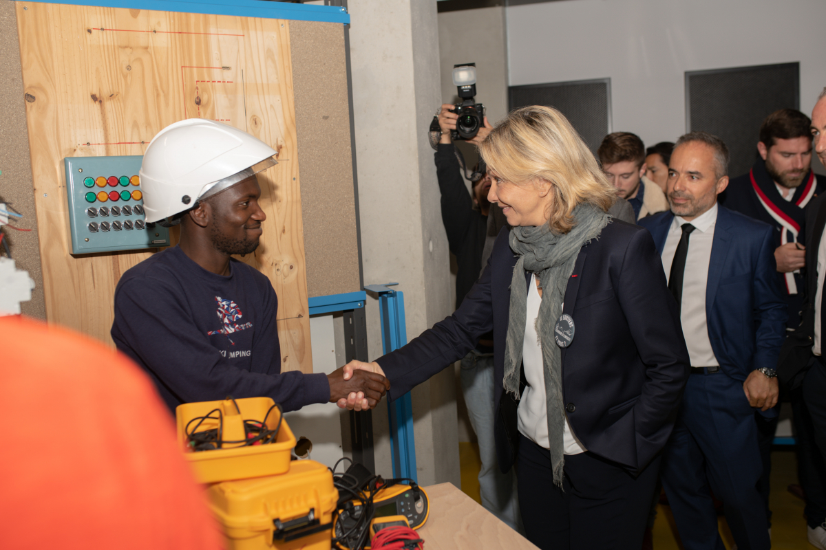 Premier investisseur privé du projet, la CSEEE est fière de voir depuis la rentrée l’activité de son CFA Delépine évoluer sur le site de l’ECO CAMPUS. Lors de sa visite en compagnie du Président de la CSEEE Xavier Rosa, Valérie Pécresse a dialogué longuement avec nos apprentis heureux de parler de leur formation et du métier d’électricien qu’ils ont choisi, un échange apprécié et motivant pour tous.