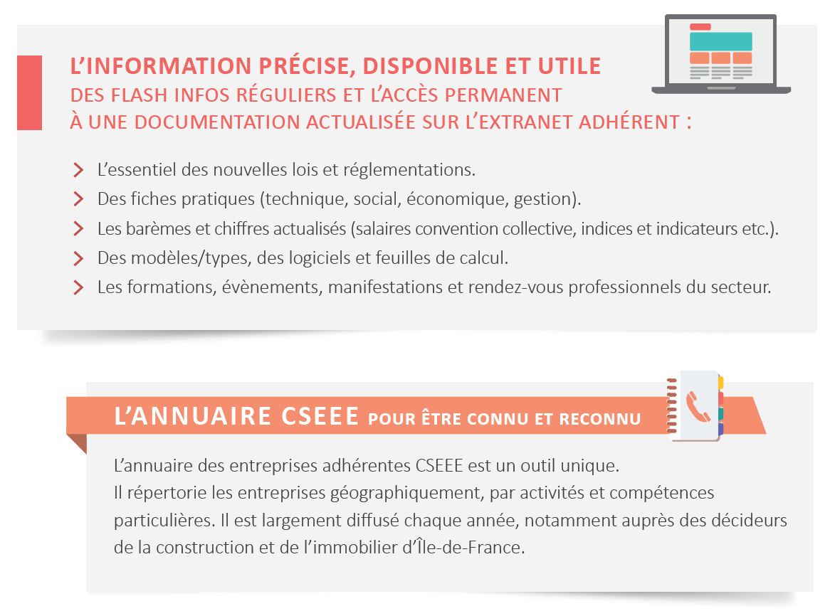 Tout au long de l'année, la CSEEE propose des événements, ouverts à tous ou réservés aux adhérents,  sur des thèmes d’actualité. Elle fournit à ses adhérents de l'information ciblée sur les différentes problématiques (économie, social, technique) liées à leur environnement professionnel.